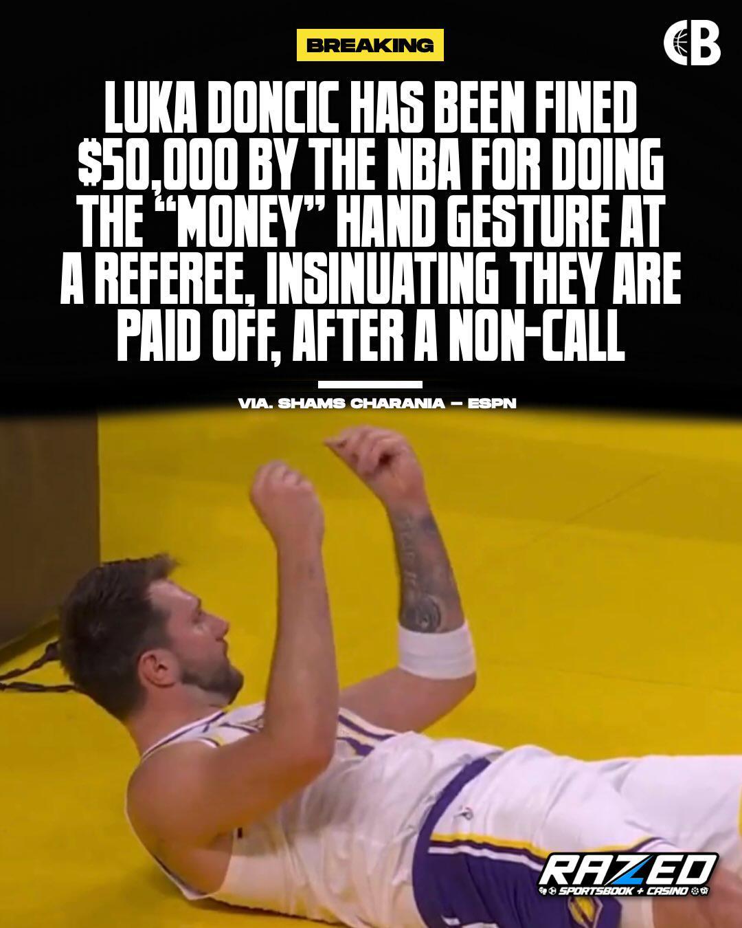 这一举动最初并没有被场上的裁判注意到,赛后联盟追加了对东契奇的处罚,罚款5万美元!